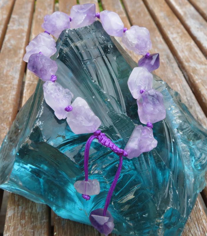 Adjustable macrame band to fit most standard wrist sizes. Made with Genuine Polished  Amethyst points.