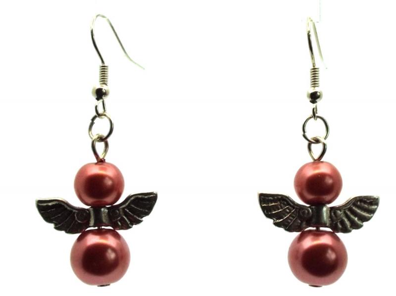 An affordable pair of angel design smooth bead earrings, with fishhook fittings. Measures approx 25x20mm, made with 8mm and 10mm glass pearl beads.