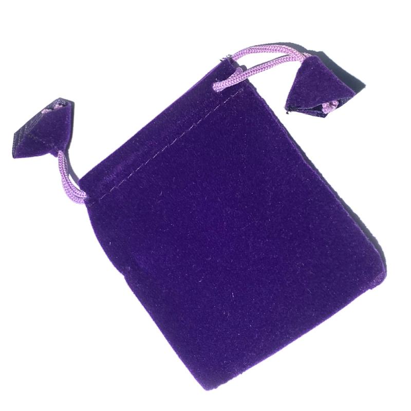 A 70x85mm purple velvet drawstring pouch, ideal for gifts, Crystals etc.