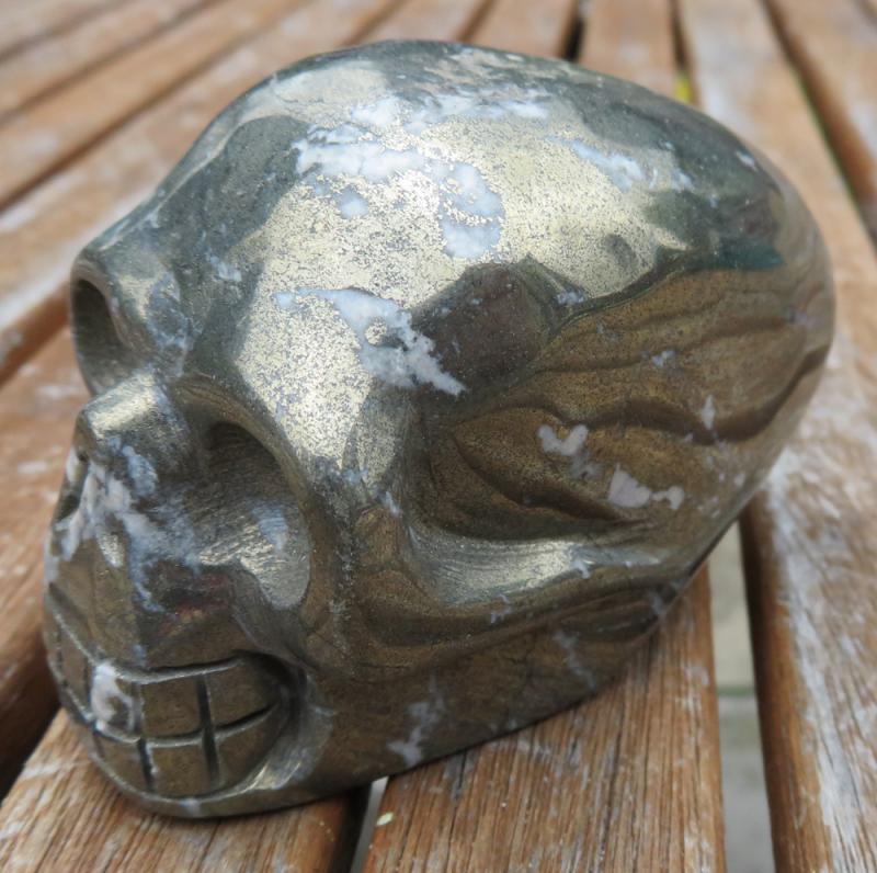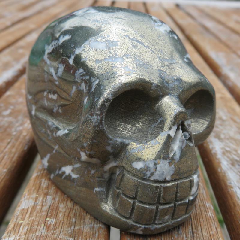 Pyrite Carved Skull Long Design 02