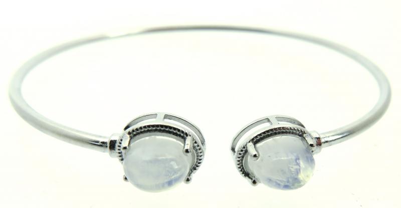 Sterling Silver open Bangle with Rainbow Moonstone cabochons, diameter size appox.60 mm for the smaller wrist.