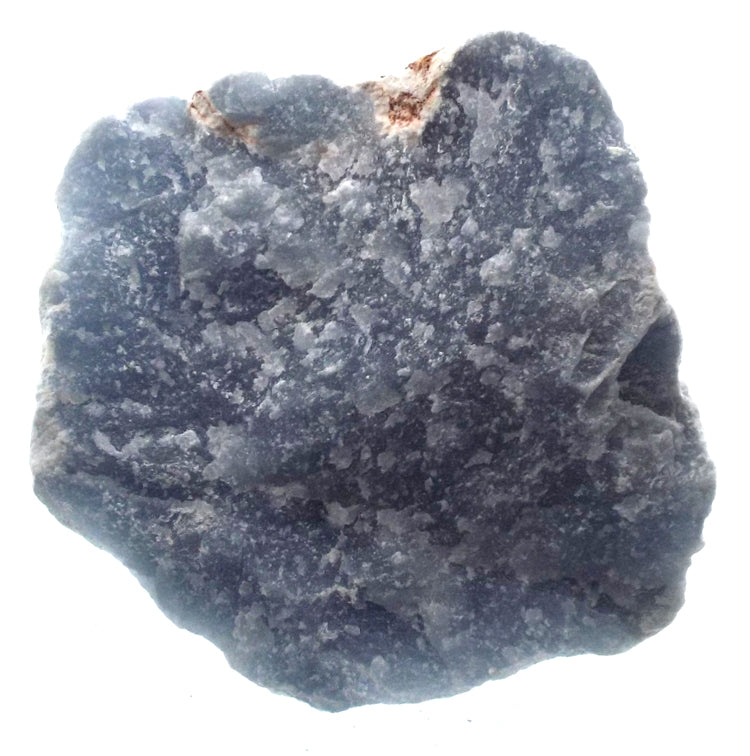 A natural, rough Angelite specimen measuring approx 50 mm long x 57 mm wide x 29 mm depth