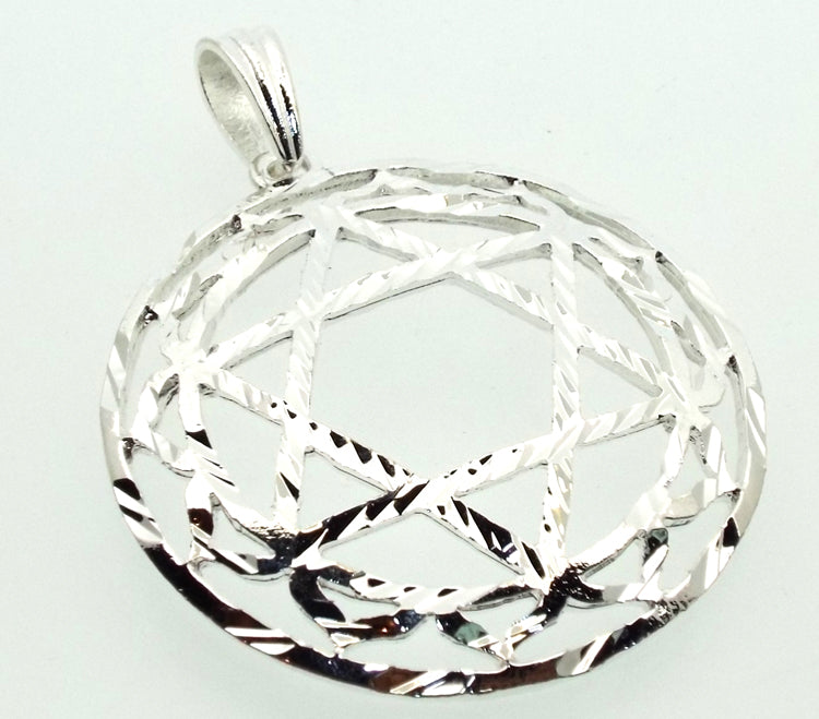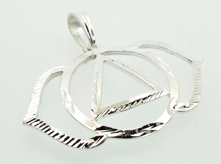 A set of seven individual silver plated pendants representing the Chakra symbols, supplied with an A5 Chakra information flyer. Not supplied with a chain or cord.