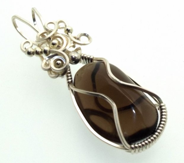 Smoky Quartz Silver Filled Wire Wrapped Pendant 05